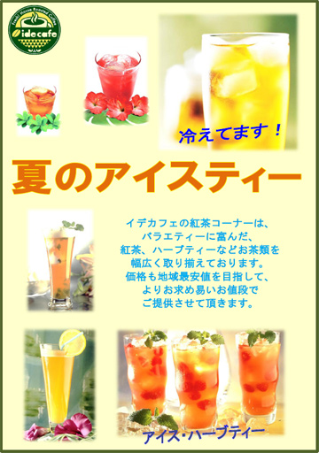 イデカフェの紅茶コーナーは、バラエティーに富んだ紅茶、ハーブティーなどお茶類を幅広く取り揃えております。
